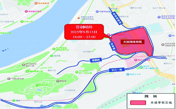 “新韻重慶 渝超同行”2025新鷗鵬重慶城市足球超級(jí)聯(lián)賽開(kāi)幕戰(zhàn),定于2025年9月13日(周六)19時(shí)至21時(shí)30分在重慶市渝中區(qū)大田灣體育場(chǎng)舉行。公安機(jī)關(guān)交通管理部門(mén)將對(duì)大田灣體育場(chǎng)周邊部分區(qū)域和關(guān)聯(lián)道路實(shí)施交通管制。