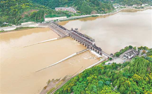 受降雨影響,漢豐湖及周邊河流水位持續(xù)上漲,開州區(qū)迅速啟動(dòng)應(yīng)急預(yù)案開閘泄洪,減輕上游防汛壓力。(特約攝影 王曉宇/視覺重慶)