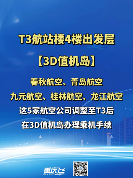 2025年9月21日起,13家航司將調(diào)整至重慶機(jī)場(chǎng)T3航站樓運(yùn)營(yíng)。目前,這些航司值機(jī)區(qū)域分布已確定(值機(jī):辦理登機(jī)牌及行李托運(yùn))具體都在哪里?跟著小布一起來(lái)看。
