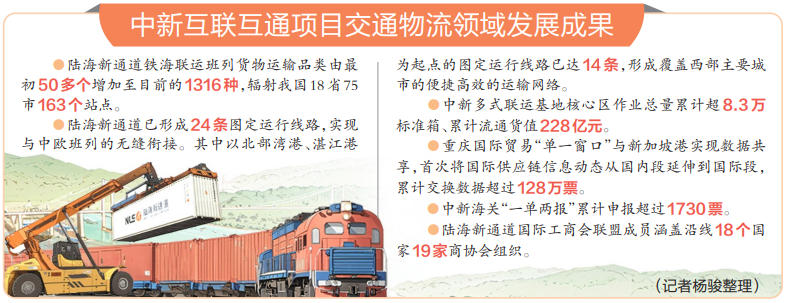 8年來,陸海新通道從無到有、從試運(yùn)行到常態(tài)化、從一條線到一張網(wǎng),展示出良好發(fā)展勢(shì)頭,為共建“一帶一路”高質(zhì)量發(fā)展、暢通國(guó)內(nèi)國(guó)際雙循環(huán)注入了強(qiáng)勁動(dòng)能。
