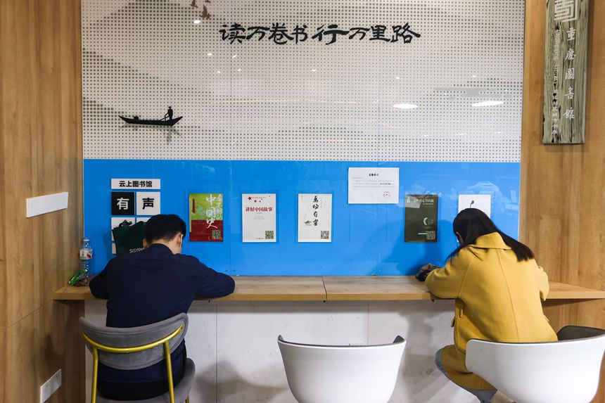 11月3日,兩江新區(qū)渝興廣場24小時城市智慧書房,不少市民正在書房內(nèi)閱讀、自習(xí)。記者 尹詩語 攝