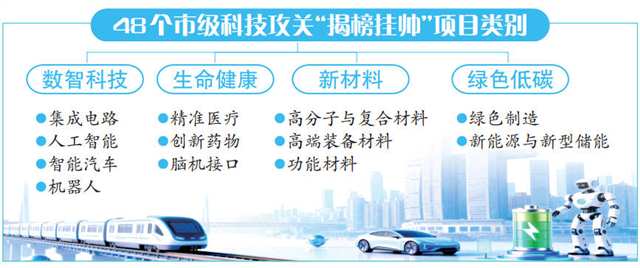 11月17日,記者從市經濟信息委獲悉,日前該委與市科技局聯合公布48個市級科技攻關“揭榜掛帥”項目,重點圍繞我市“33618”現代制造業(yè)集群體系建設和“416”科技創(chuàng)新布局展開,涉及4個類別、12個重點產業(yè)領域。累計發(fā)榜金額將超3億元,其中,經費在500萬元以上的重大項目有26個,500萬元以下的重點項目有22個。